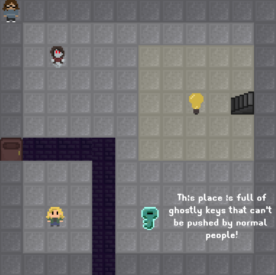 Many years ago, you died while trying to ascend the infamous Puzzle Tower. Now, two unsuspecting humans have wandered into that very same tower! Wanting to protect them from sharing your fate, you resolve to help these humans complete the puzzles using your ghostly abilities. Can you save them before it's too late?